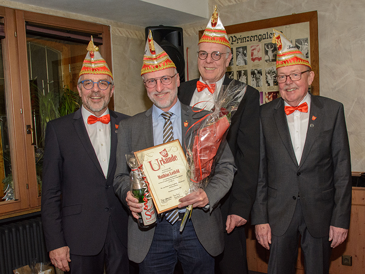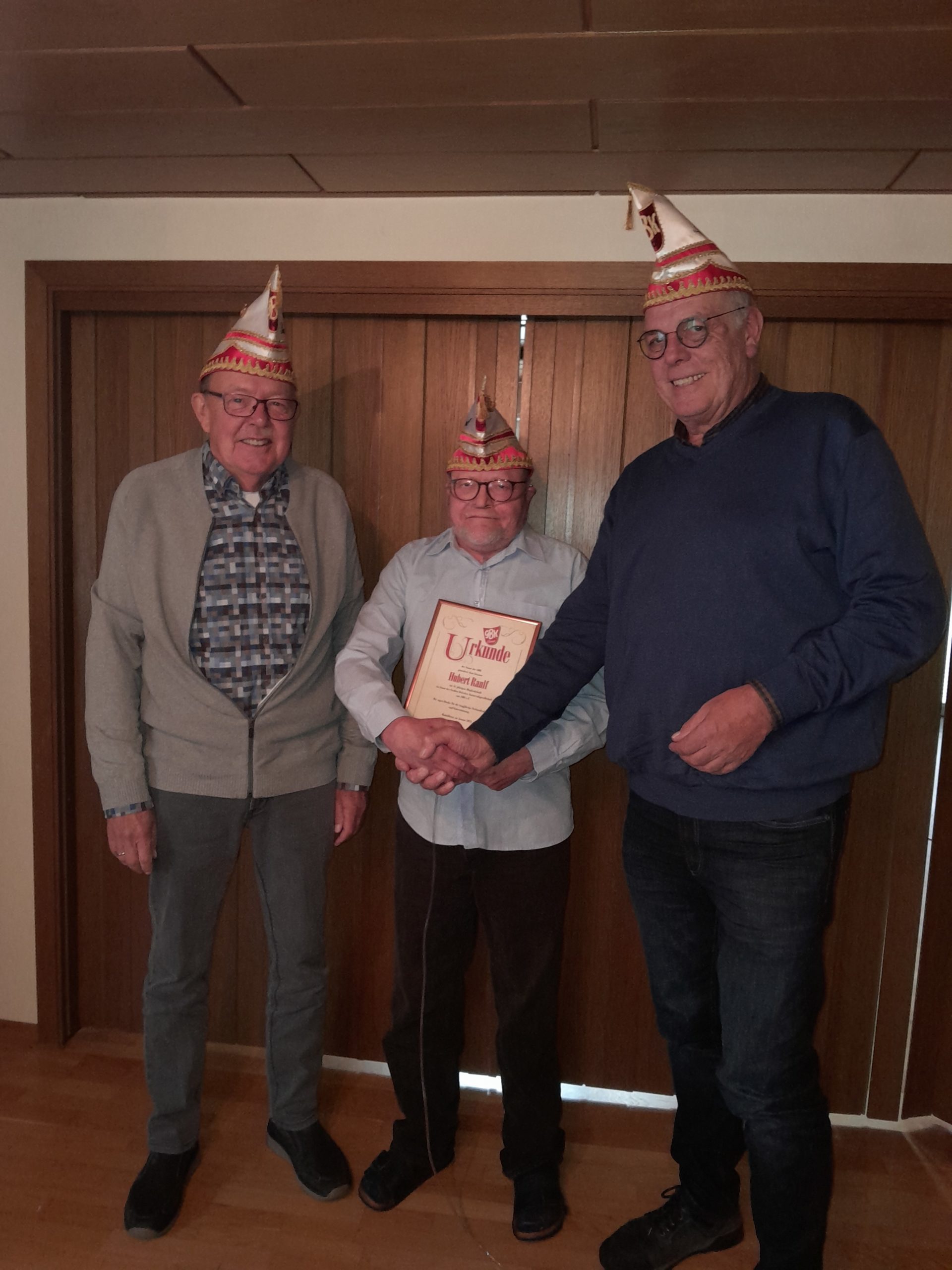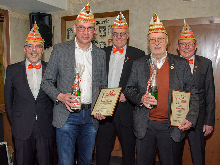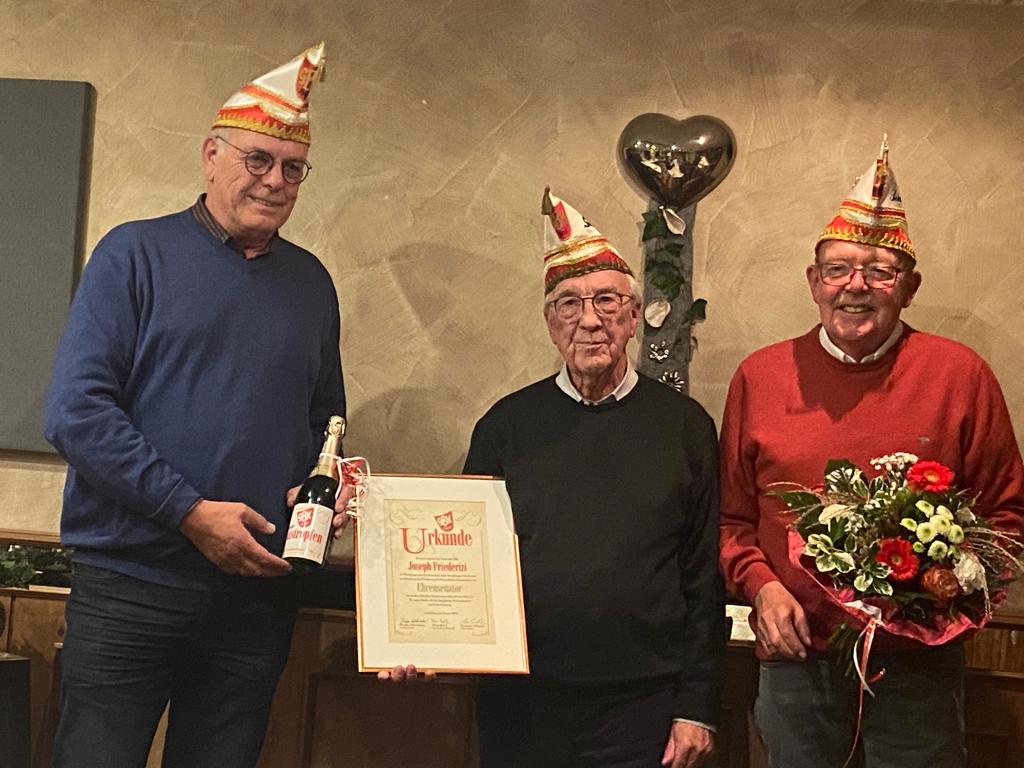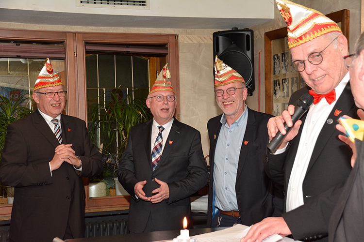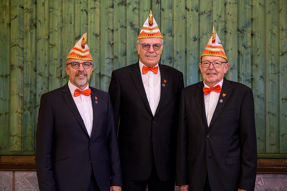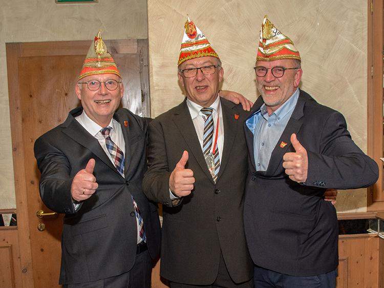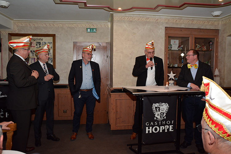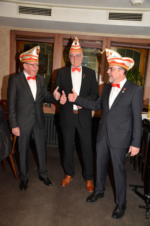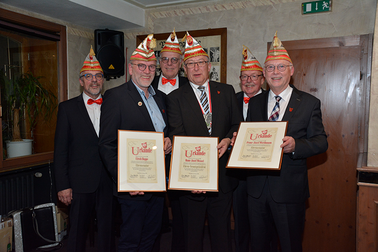 Die „Wiedereingliederung“ war bestanden und anschließend ernannte Präsident Jürgen Lütkeduhme im Namen des Senates Hans-Josef Wessel zum Ehrensenatspräsident und Uli Hoppe und Charly Werthmann zu Ehrensenatoren als Dank für ihre langjährige, hervorragende Vorstandsarbeit im Senat.