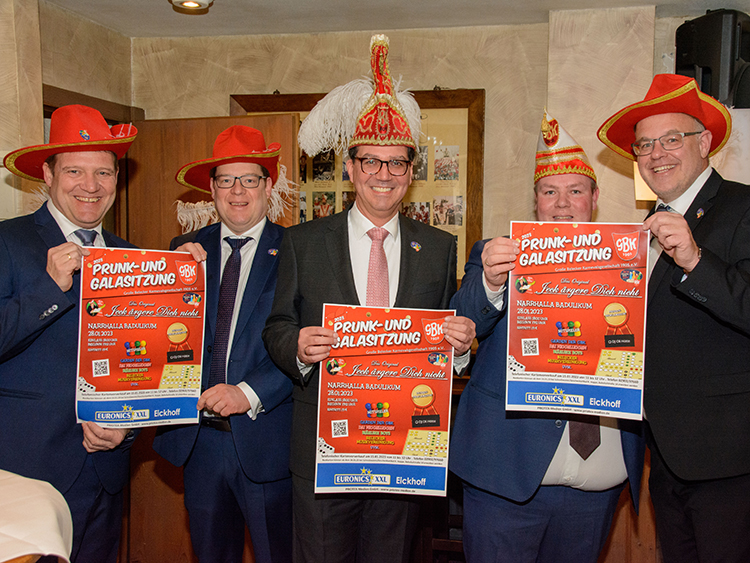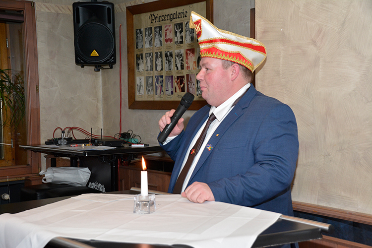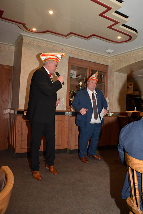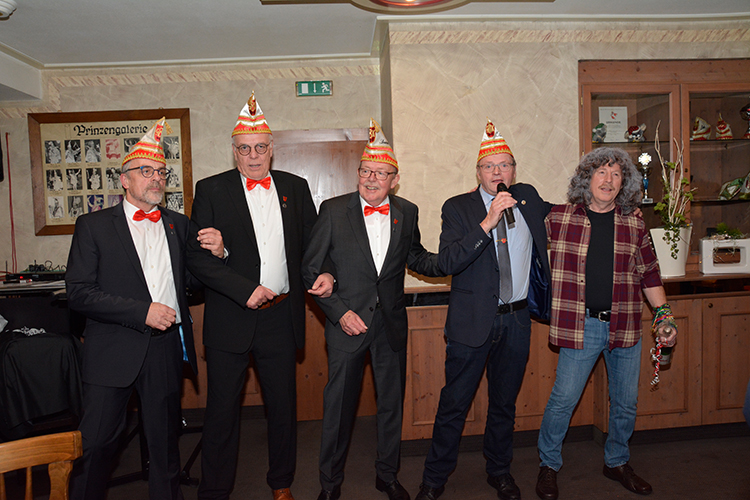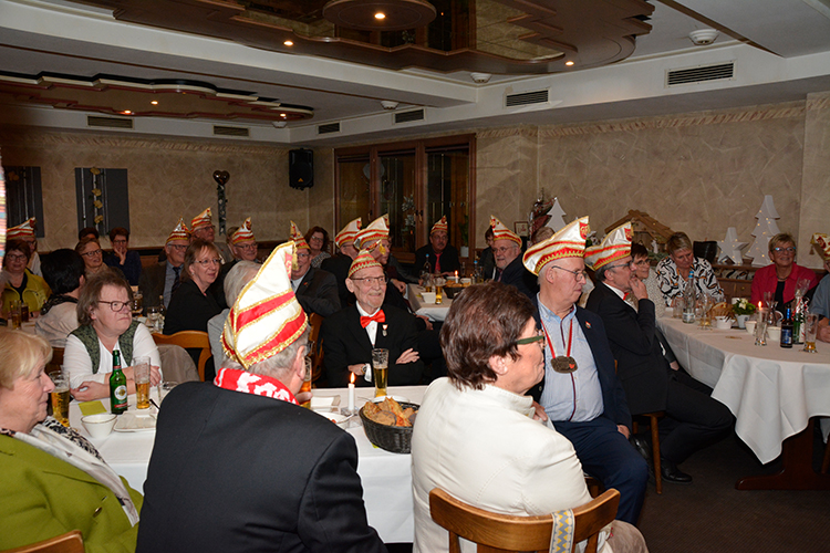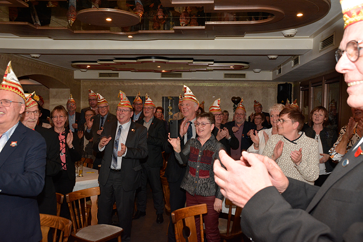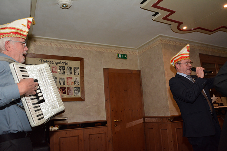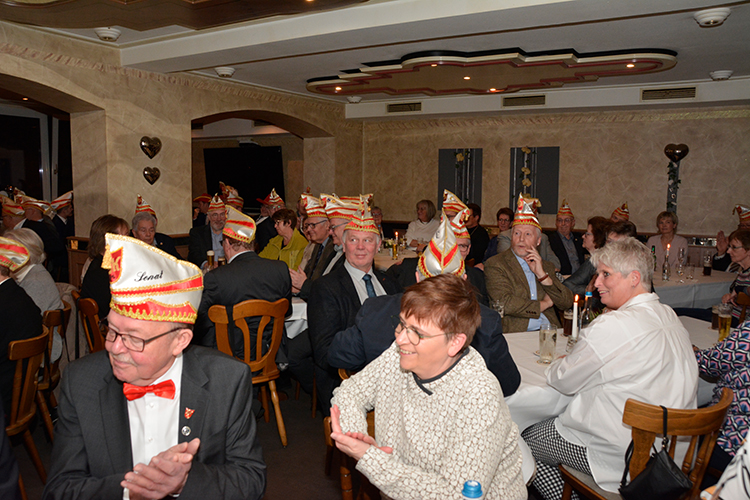 Nach diesen Ehrungen und Glückwünschen hielt GBK Präsident Christoph Sellmann, der mit seinem Vorstand und natürlich mit Prinz Dirk I. nebst Pagen ebenfalls anwesend war, eine kleine Vorschau auf die kommende Session. Danach war singen und schunkeln mit Hasi angesagt. Die Anwesenden hatten nichts verlernt in der karnvalslosen Zeit und schunkelten und sangen textsicher mit.