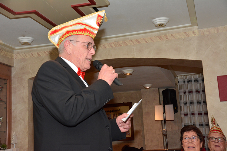 Der „Politische Jahresrückblick“ von Hans-Josef Wessel war wie schon seit Jahren ein mit offenen Augen und spitzer Zunge vorgetragener Wortbeitrag zur allgemeinen politischen, gesellschaftlichen und wirtschaftlichen Lage in der Welt, „schließlich leben wir in einem freien Land in dem jeder seine Meinung offen vortragen kann“ war das Resümee von Wessel.