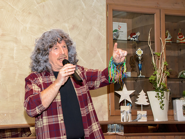 Ein textlicher Leckerbissen war anschließend der politische Jahresrückblick von Hans-Josef Wessel. Mit spitzer Zunge und in Reimform nahm er Stellung zu allem was die Welt in den letzten Monaten bewegte. Ob Corona-Pandemie, Klima Krise, Gendern oder Gesundheitswesen, die Verantwortlichen hierfür bekamen alle ihr Fett weg.