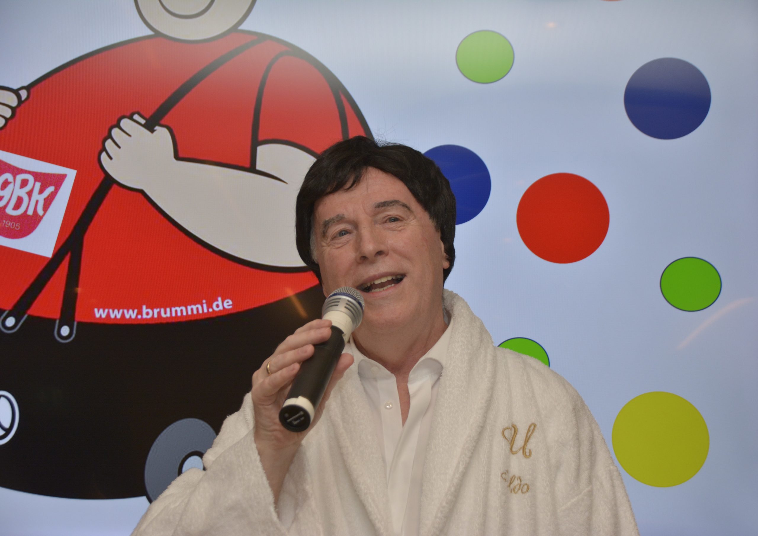 Zum zehnten Todestag von Udo Jürgens verwandelte sich Senator Hubert Blecke mit weißem Bademantel in die Rolle des Künstlers und sang zu Udo‘s Melodien selbst verfasste Texte.